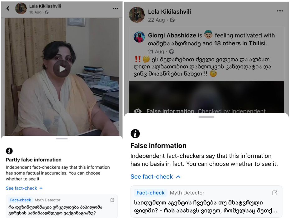 Facebook user Lela Kikilashvili has a history of posting false information already fact-checked by Myth Detector, including conspiracy theories about COVID-19, the “New World Order,” the human papillomavirus vaccine, and other topics.