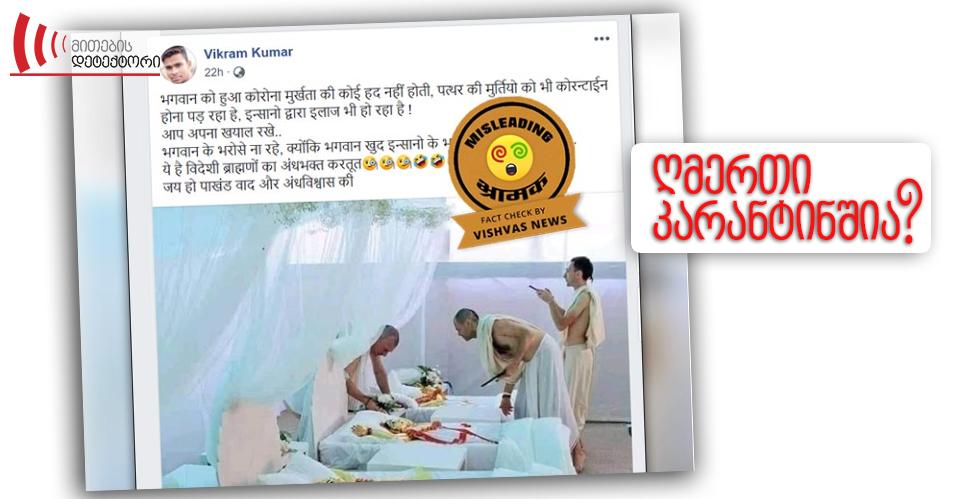 ინდოეთში, სოციალურ ქსელებში ვირუსულად გავრცელდა ფოტო წარწერით, რომ ღმერთი კორონავირუსის გამო კარანტინში იყო. ფოტოზე ასახულია გარკვეული სახის რელიგიური რიტუალი.