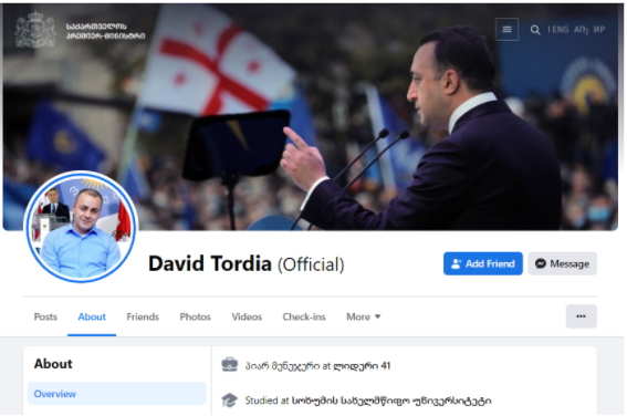 დავით თორდიას პოსტი დამუშავებულ ფოტოს და გაყალბებულ ციტატას შეიცავს. გიორგი ხარჩილავას ავთენტურ ფოტოზე წალენჯიხის გერბია და არა ჩარიცხვის აპარატი, მისი ციტატა კი აპარატის კაბინეტში დადგმასთან დაკავშირებით – გამოგონილია.