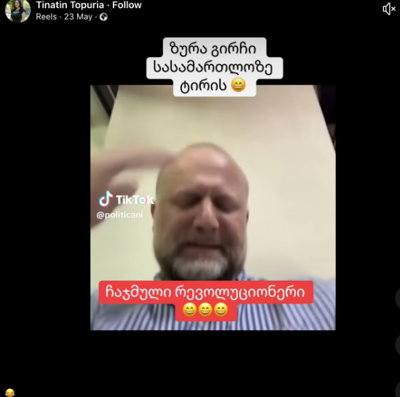 23 მაისს ფეისბუქ-ანგარიშმა Tinatin Topuria გაავრცელა ვიდეო, რომელშიც ჩანს, რომ პარტია “გირჩი – მეტი თავისუფლებას” ლიდერი, ზურაბ ჯაფარიძე ტირის. ვიდეოზე დართული წარწერის მიხედვით, კადრები სასამართლო დარბაზშია გადაღებული.