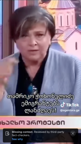 კადრებზე დატანილია იმ Tik-Tok ანგარიშის სახელი, “Politicani”, საიდანაც ფეისბუქ-მომხმარებელს ვიდეო აქვს აღებული. ანგარიშმა “Politicani” ჯაფარიძის ვიდეო 23 აპრილს გამოაქვეყნა. აღსანიშნავია, რომ ანგარიშს ბოლო 2 დღის განმავლობაში [24 მაისის მონაცემებით] 5 ვიდეო აქვს გამოქვეყნებული, რომელთაგანაც 4 “გირჩი – მეტი თავისუფლებას” ლიდერს შეეხება და მის დისკრედიტაციას ისახავს მიზნად.