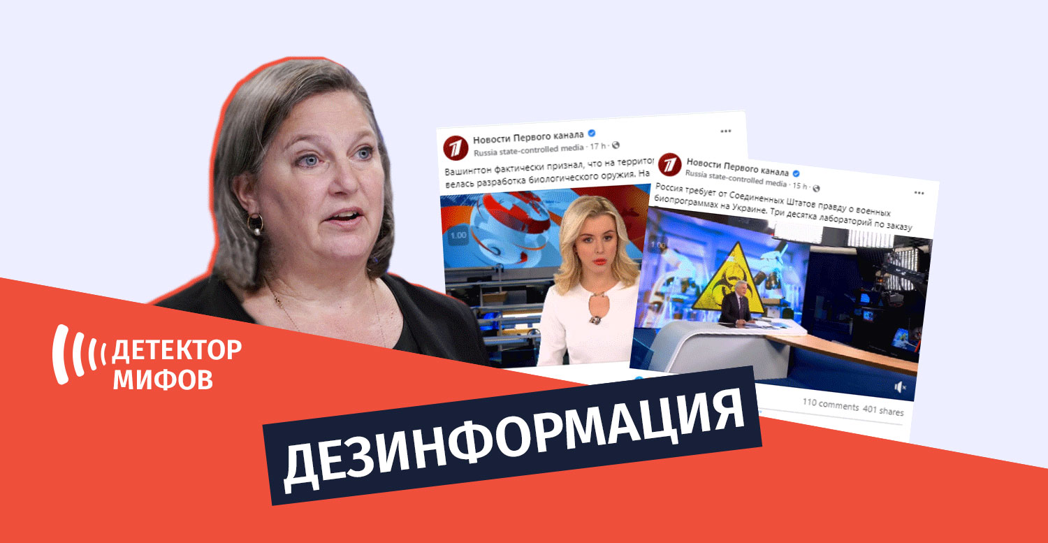 9 марта Первый канал России активно освещал заявление заместителя госсекретаря США Виктории Нуланд по поводу биолабораторий в Украине. Согласно одному из сюжетов Первого канала, Вашингтон