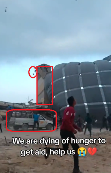 Учитывая места и здания, показанные на видео, вполне вероятно, что на кадрах запечатлена помощь США, оказанная 25 марта 2024 года.