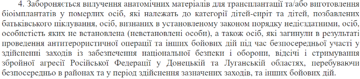 Законопроект принятый Верховной Радой украины в 2021 году не позволяет военным командирам давать согласие на извлечение органов погибших военнослужащих