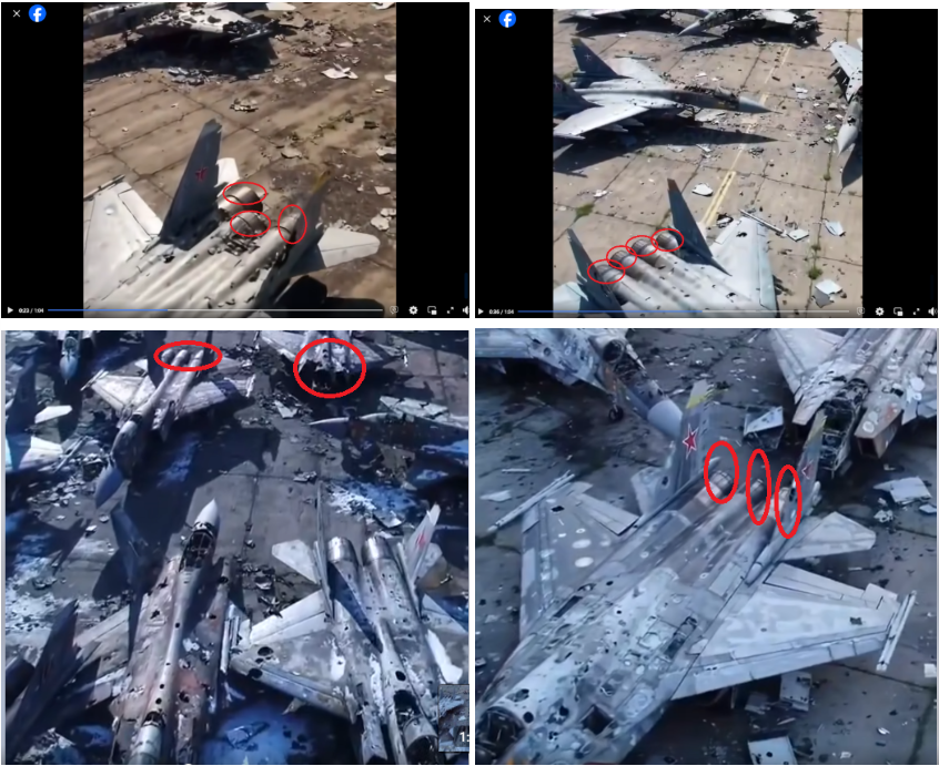 2-3 июня грузиноязычные (1, 2) и русскоязычные пользователи Facebook распространили видео, в котором, как они утверждают, показаны российские бомбардировщики, уничтоженные в ходе операции, проведенной Службой безопасности Украины 1 июня. На видео показаны десятки таких летательных аппаратов, большинство из которых полностью уничтожены, а некоторые значительно повреждены.